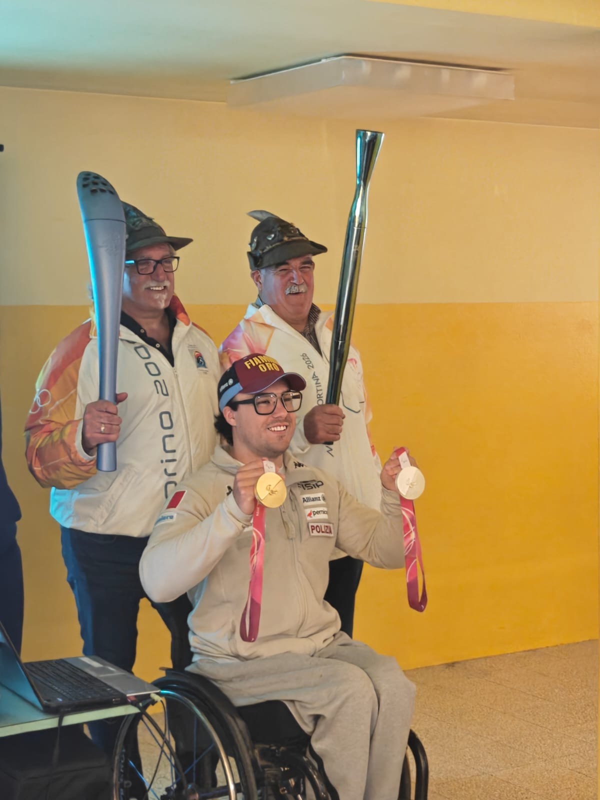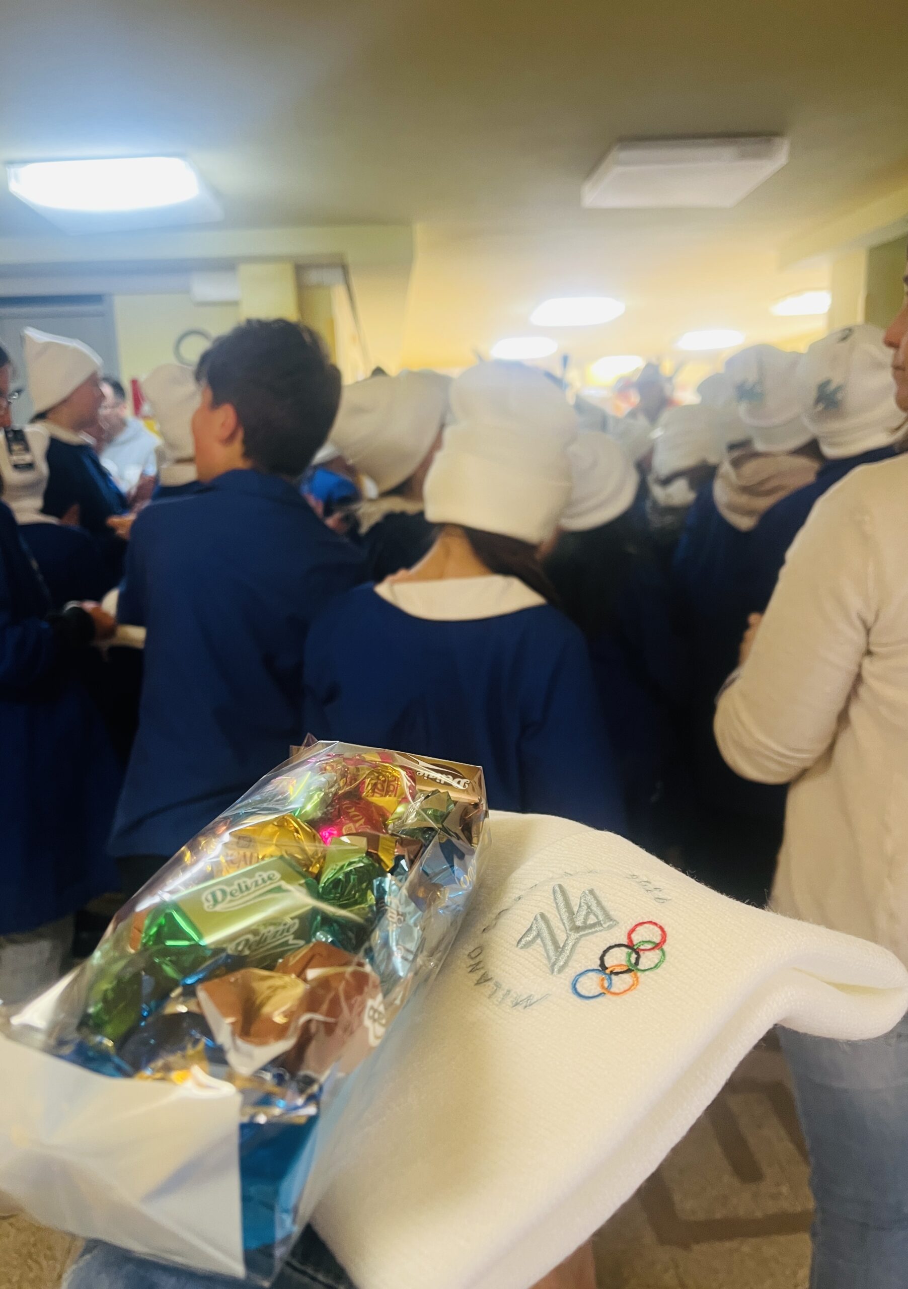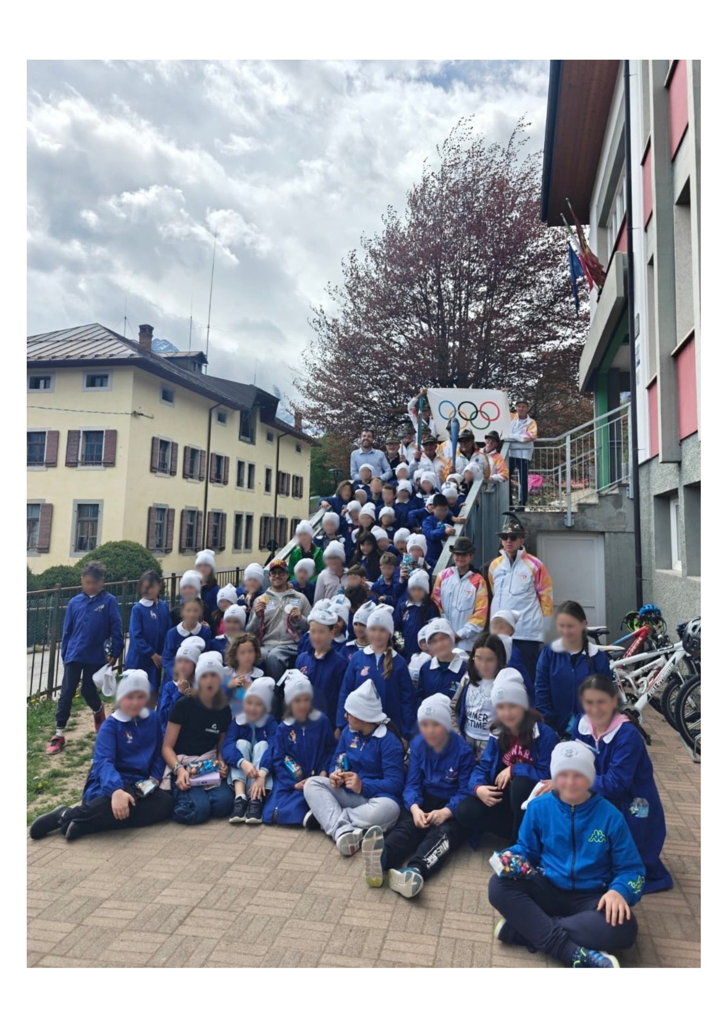 Sono giunti anche una decina di Alpini, una rappresentanza del gruppo ANA Cadore e Cortina, che ha avuto l’onore di partecipare a questi Giochi in uniforme da tedofori. Gli Alpini hanno portato in visione ai bambini ben tre fiaccole olimpiche: quella del 1956 a Cortina, quella del 2006 a Torino e la più recente (prestata da Fabio Pompanin Chef di Casa Italia a Cortina) del 2026. In particolare la fiaccola del 1956 era in mano all’ ex Presidente della Sezione ANA Cadore Antonio Cason, tedoforo nel 1956, 2006 e nel 2026.