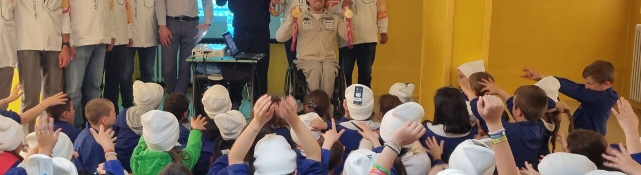 Nella mattinata di martedì 21 aprile è arrivato a trovare i bambini e i maestri della primaria di Valle di Cadore il nostro campione paralimpico Renè De Silvestro, medaglia d’oro e argento ai Giochi Paralimpici di sci alpino paralimpico -categ. sitting- Milano-Cortina 2026.
